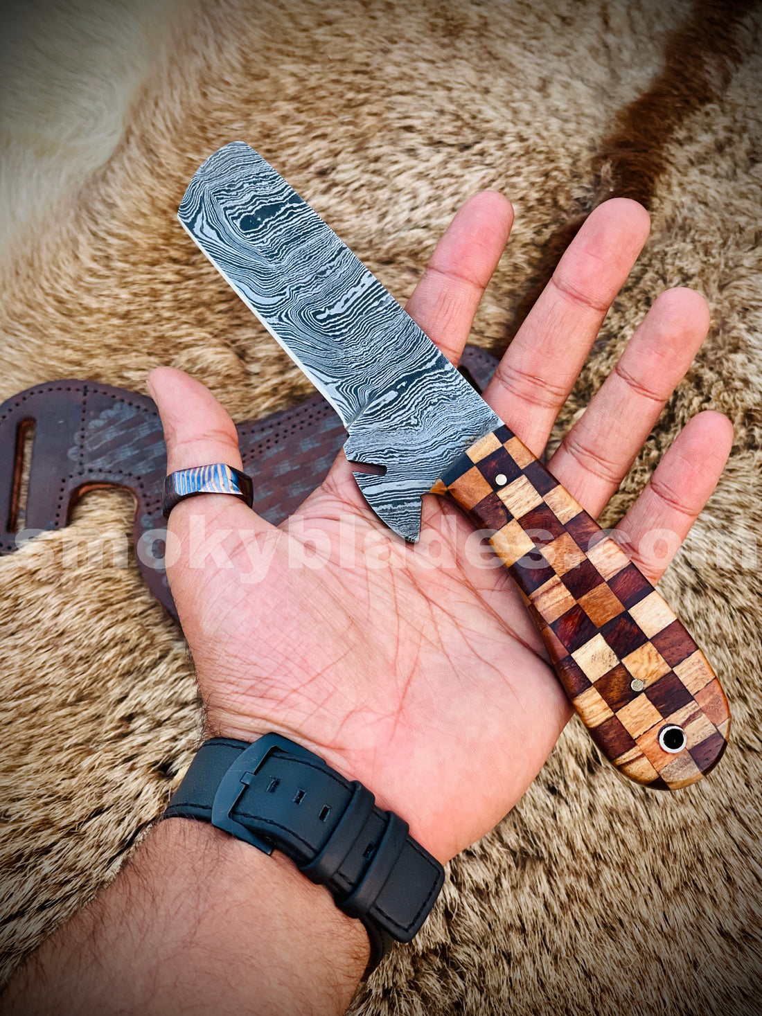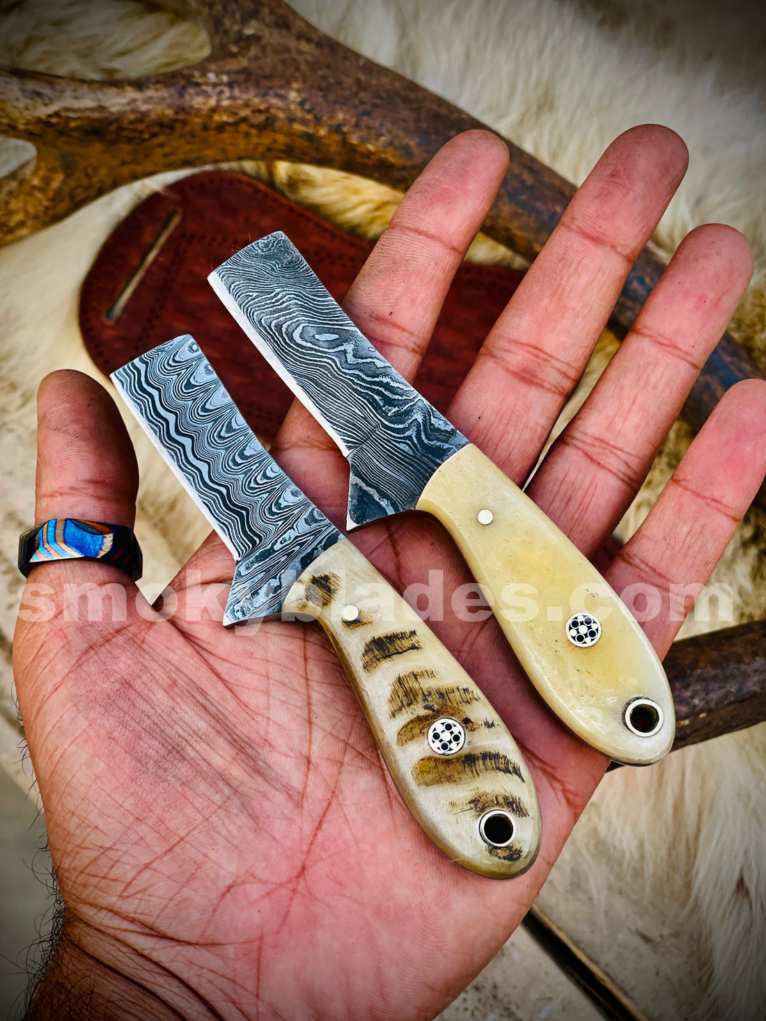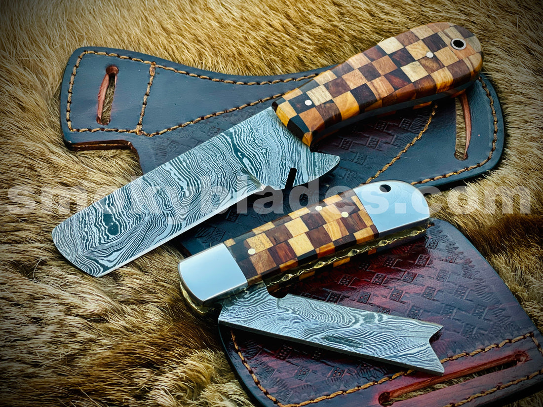 An Amazing Custom Hand Made Damascus Steel Beautiful Bull Cutter Knife SetOverall Length 6 inchesBlade Length 3...