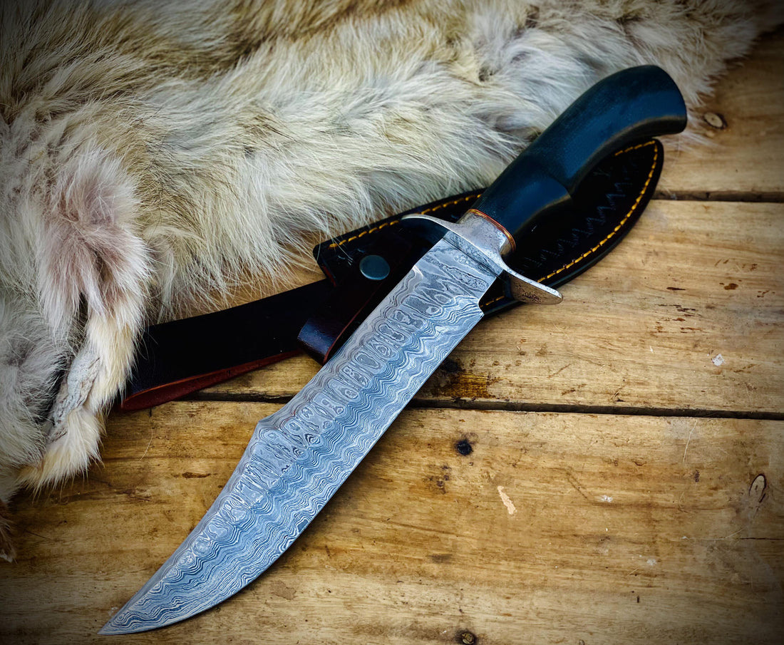 An Amazing Handmade Damascus Steel Black Swami Bowie Hunter Knife Overall Length 15 inches Blade Length 10 inches Handle Length 5 inches...