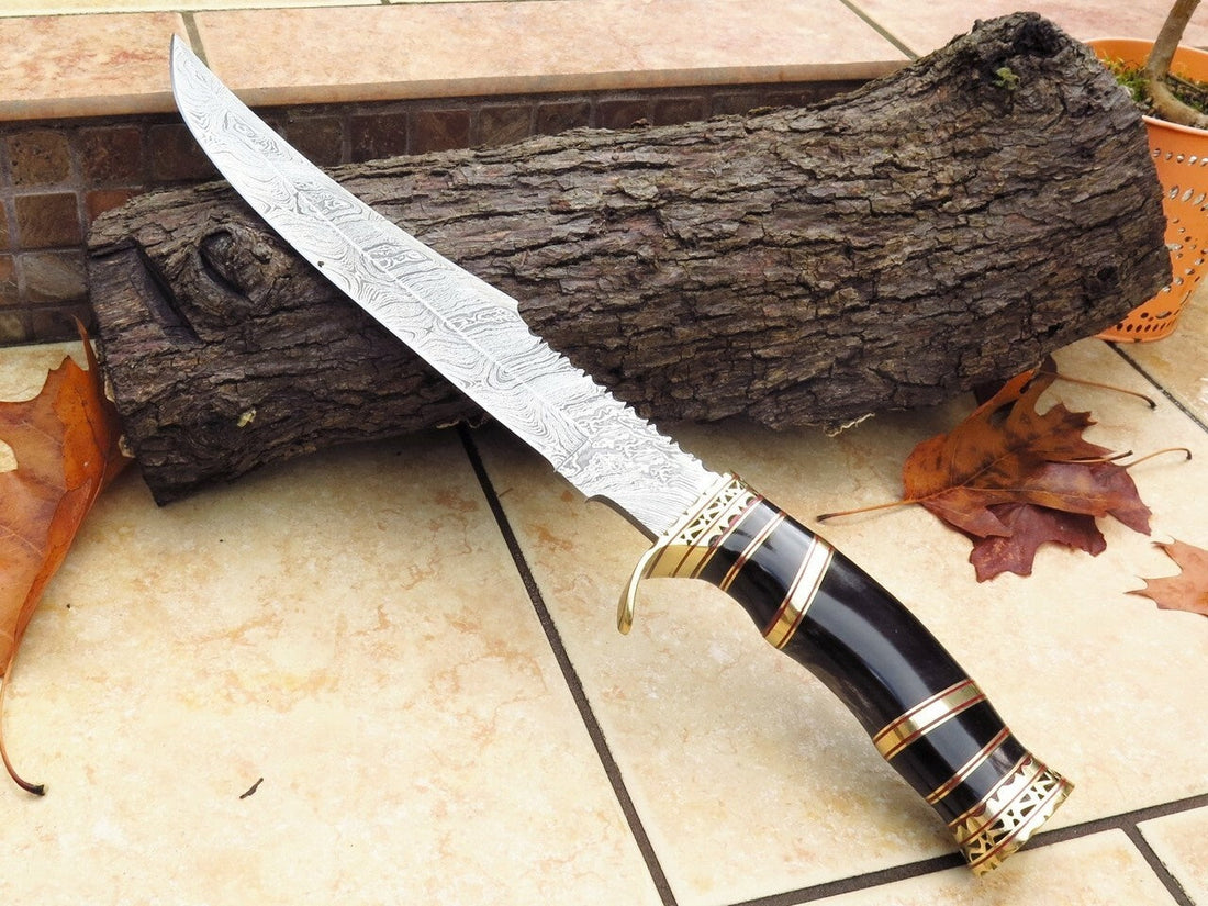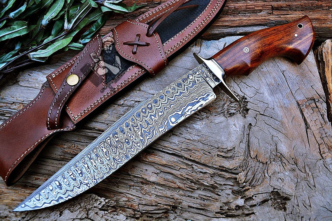 An Amazing Custom Handmade Hand Forged Damascus Steel Bowie Hunting Knife 12-inch Overall, Hunting Bowie Knife - Full Tang...