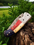 An Amazing Custom Hand Made Hand Forged Hand Engraved Texas Flag Handle Damascus Steel Folding Pocket Knife