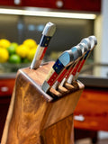 Handles Made of Red/Blue Pakka Wood & Bone & Stainless Steel Bolsters.