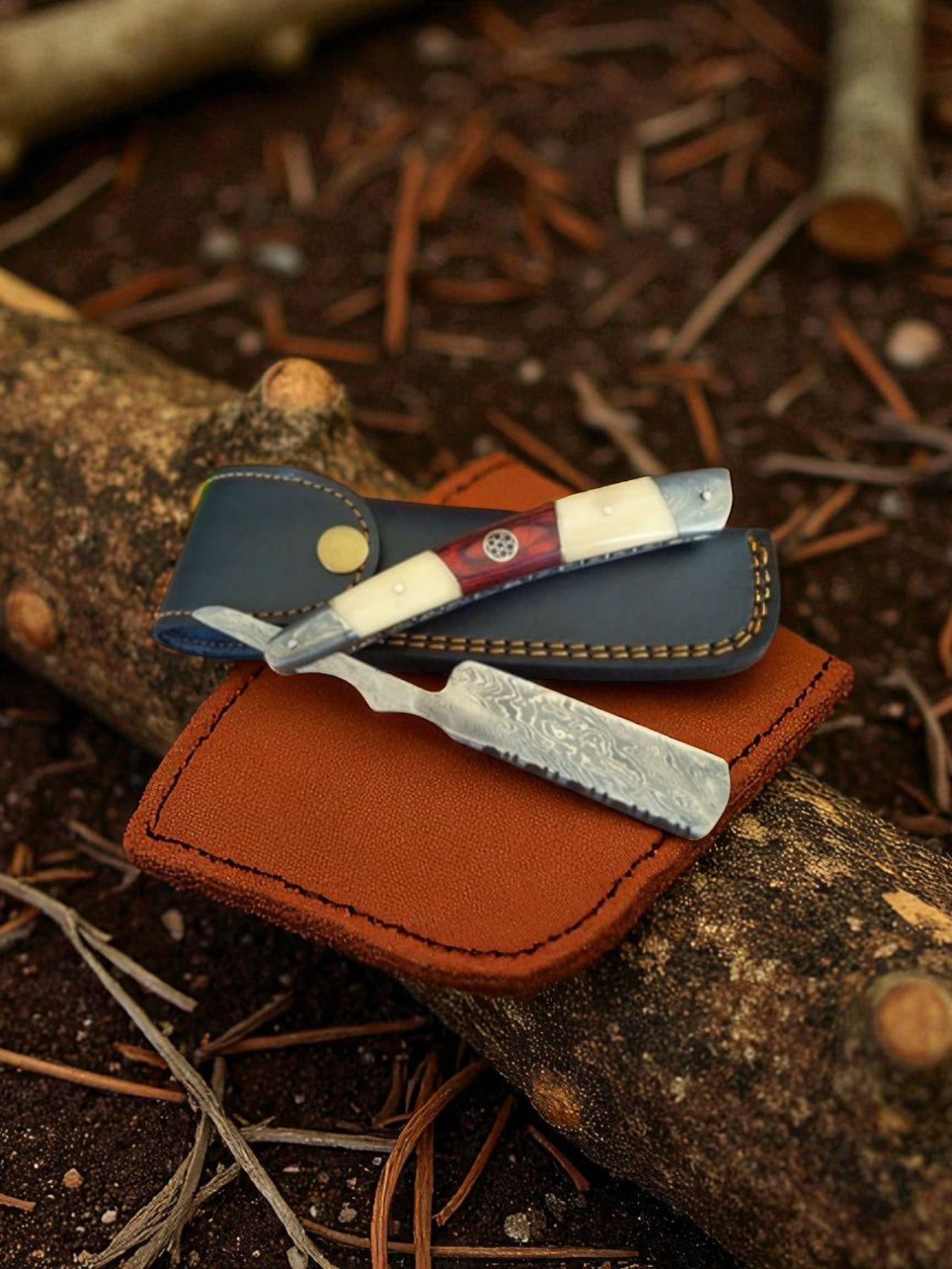 DAMASCUS STEEL STRAIGHT RAZOR】 Manufactured with ultra-sharp Damascus steel cutting core at HRC58-60 hardness,
